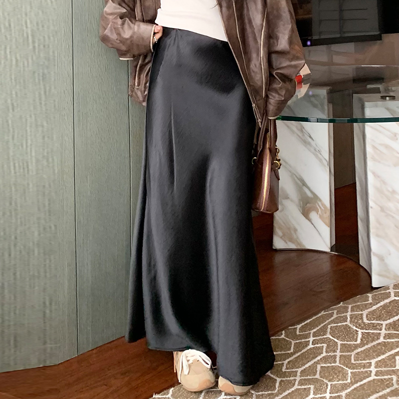艾诺丝雅诗 40813576 極简风高腰松弛垂感捏褶A字休闲半身裙女秋季