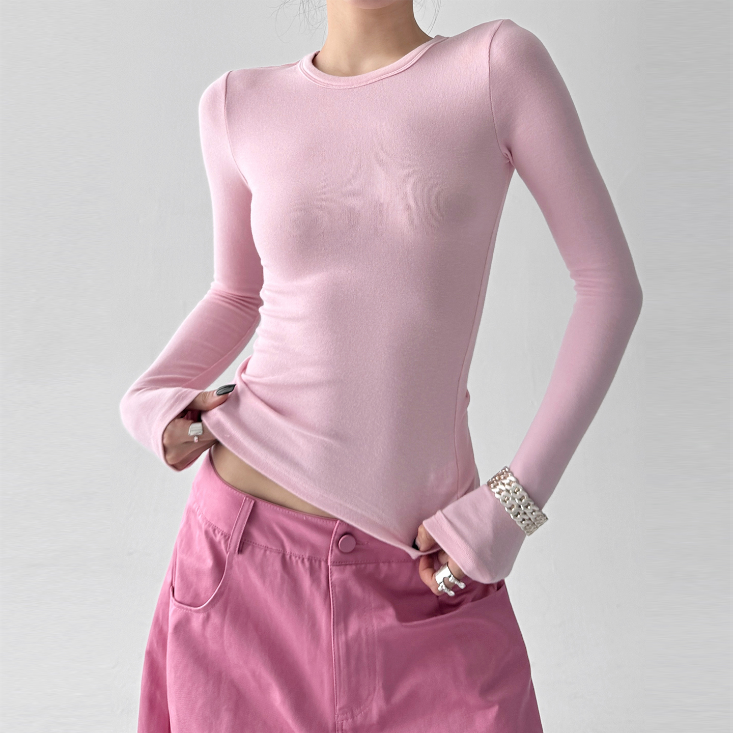 新款 性感长袖 打底衫 上衣简约高级感欧美时尚 圆领修身 2025春秋季