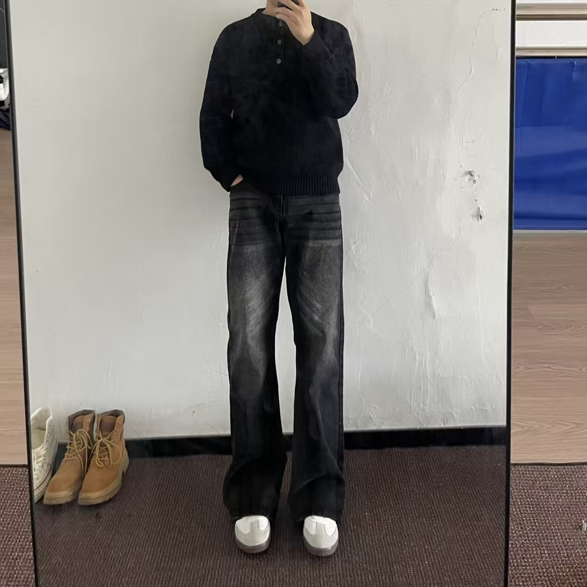 锈土色微喇叭水洗牛仔裤 男vibe高街复古做旧显高百搭显瘦休闲长裤