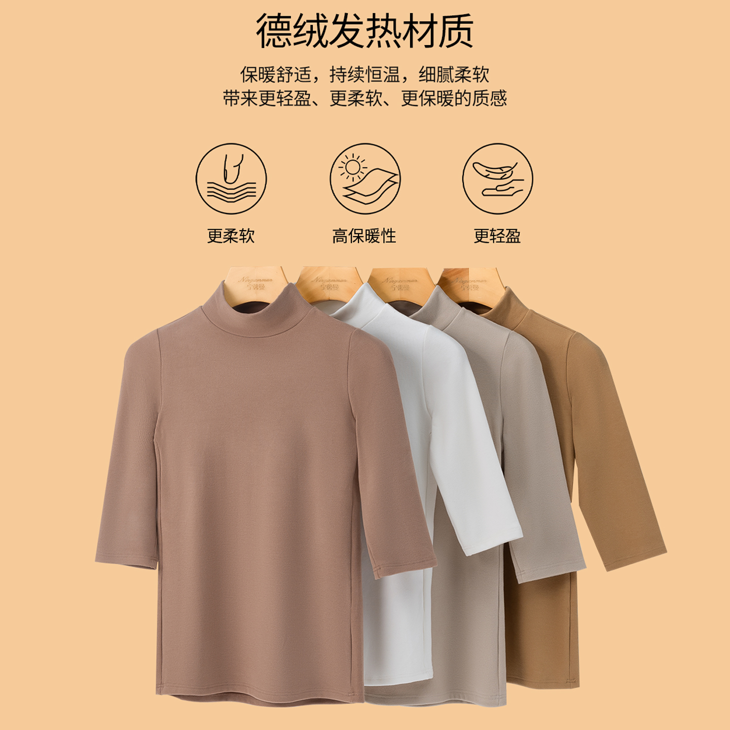 女五分袖 半袖 中袖 磨毛短袖 T恤上衣 加绒秋冬季 德绒发热保暖打底衫
