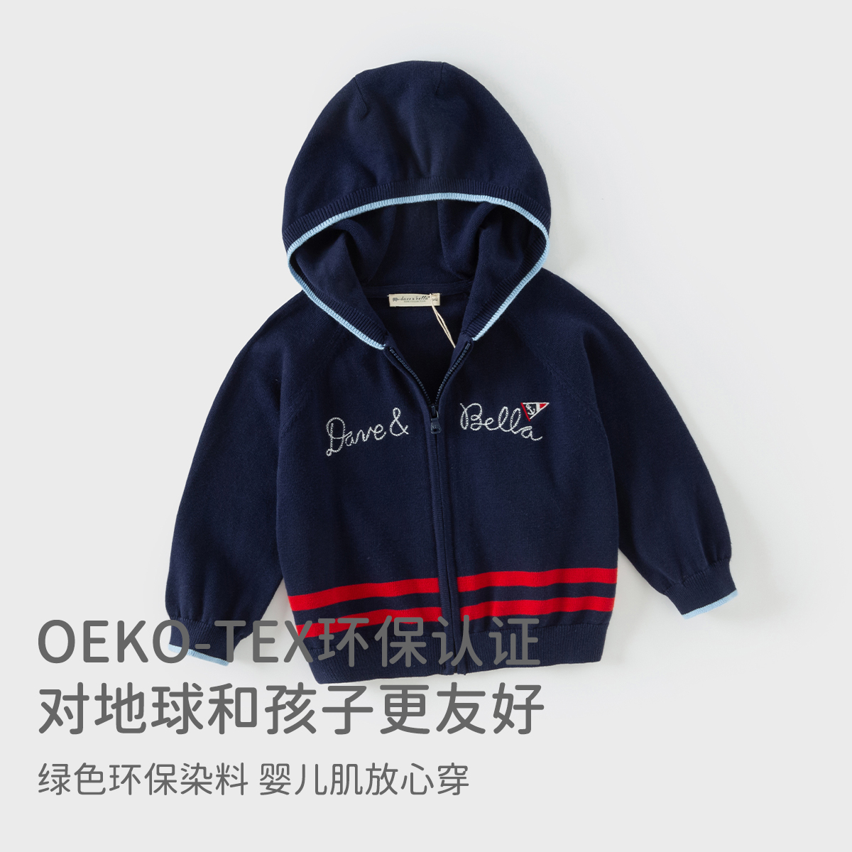 男宝宝针织连帽衫 戴维贝拉男童毛衣外套秋装 儿童纯棉开衫