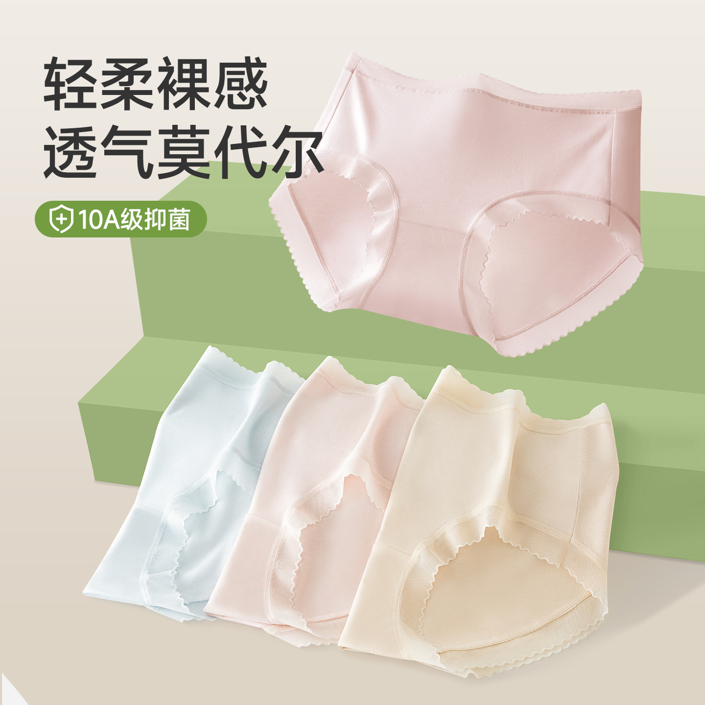 三角裤 ubras莫代尔内裤 女士一体织纯棉抗菌裆中高腰透气亲肤薄款