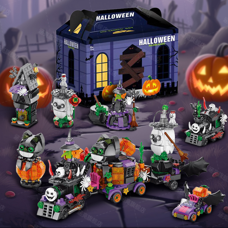 万圣节积木恐怖南瓜灯小颗粒儿童益智拼装 礼物摆件2025火爆玩具