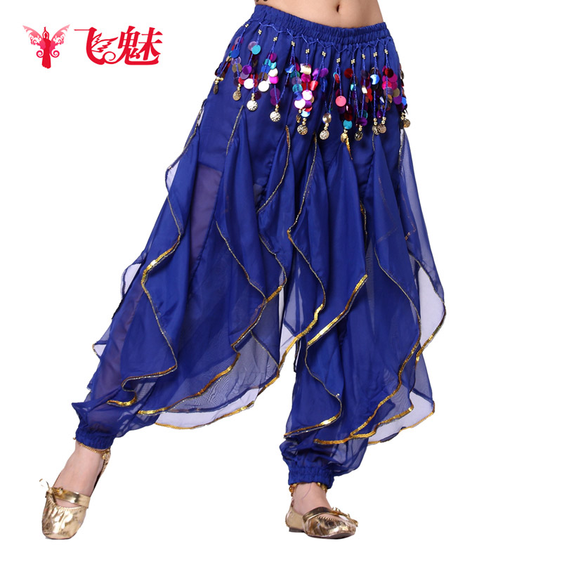 成人女新款 飞魅 铜锣彩片雪纺旋转裤 灯笼裤 肚皮舞练功服2024新款