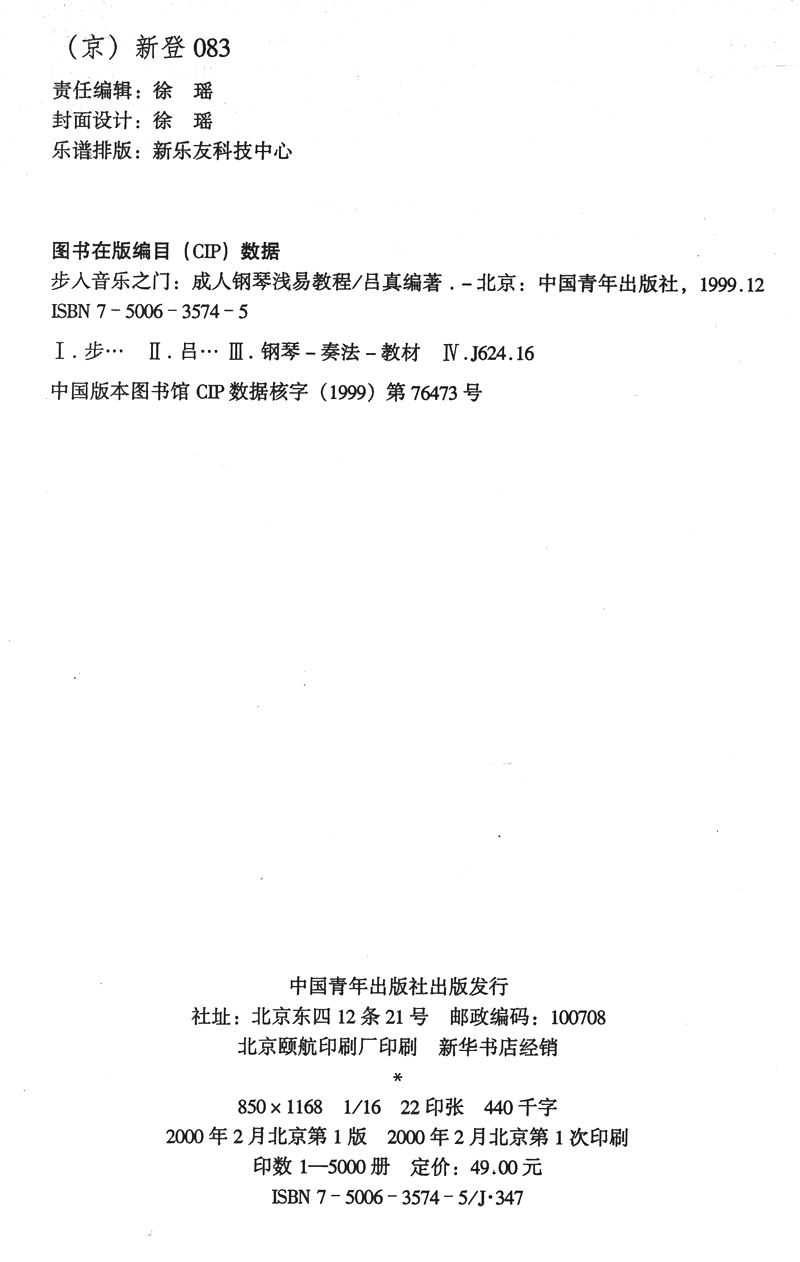 上下2册 成人钢琴浅易教程 吕真 编 社 正版 中国青年出版 步入音乐之门