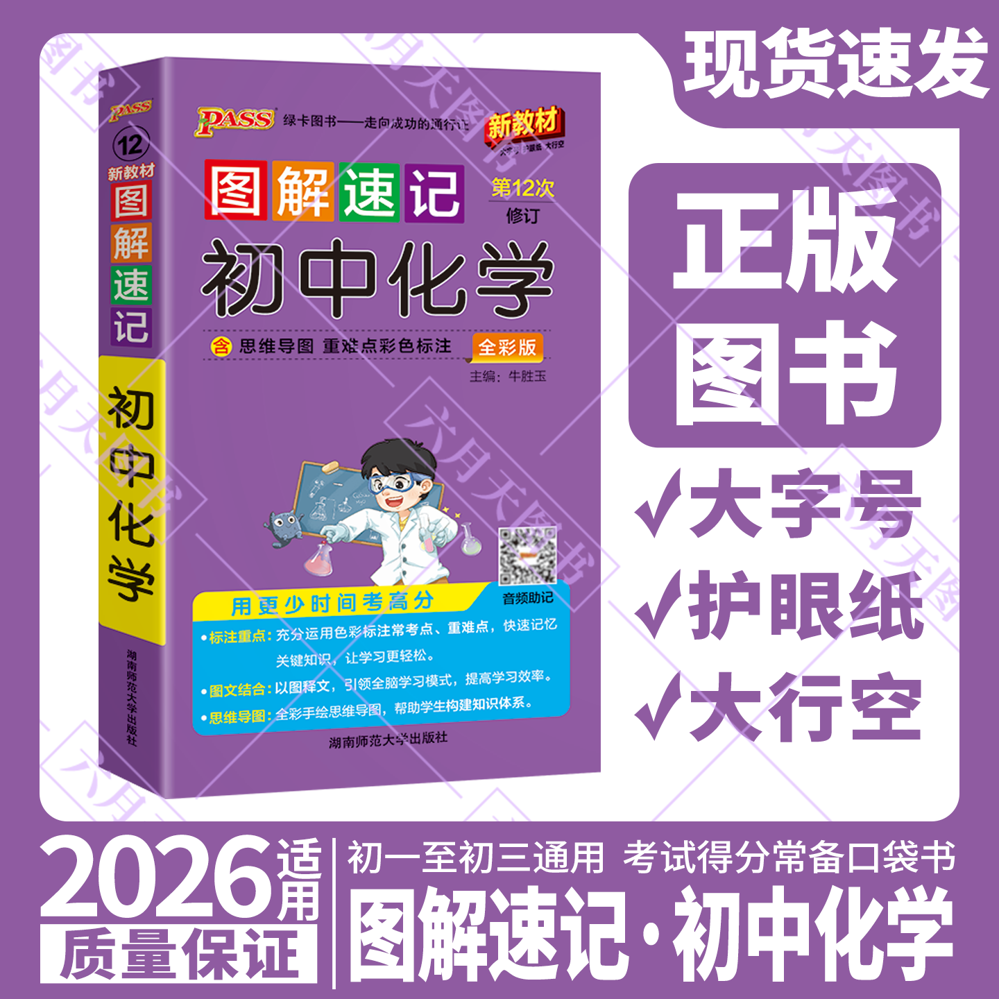 2026适用pass绿卡图解速记初中化学全彩通用思维导图重难点彩色标注基础知识中考真题精析实验探究九年级上下初三考点全解读大全辅