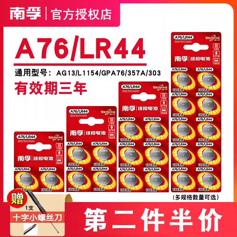 l1154 357a a76碱性sr44小电子1.5v手表数显游标卡尺闹钟儿童玩具遥控器通用圆形电子 ag13 南孚纽扣电池lr44