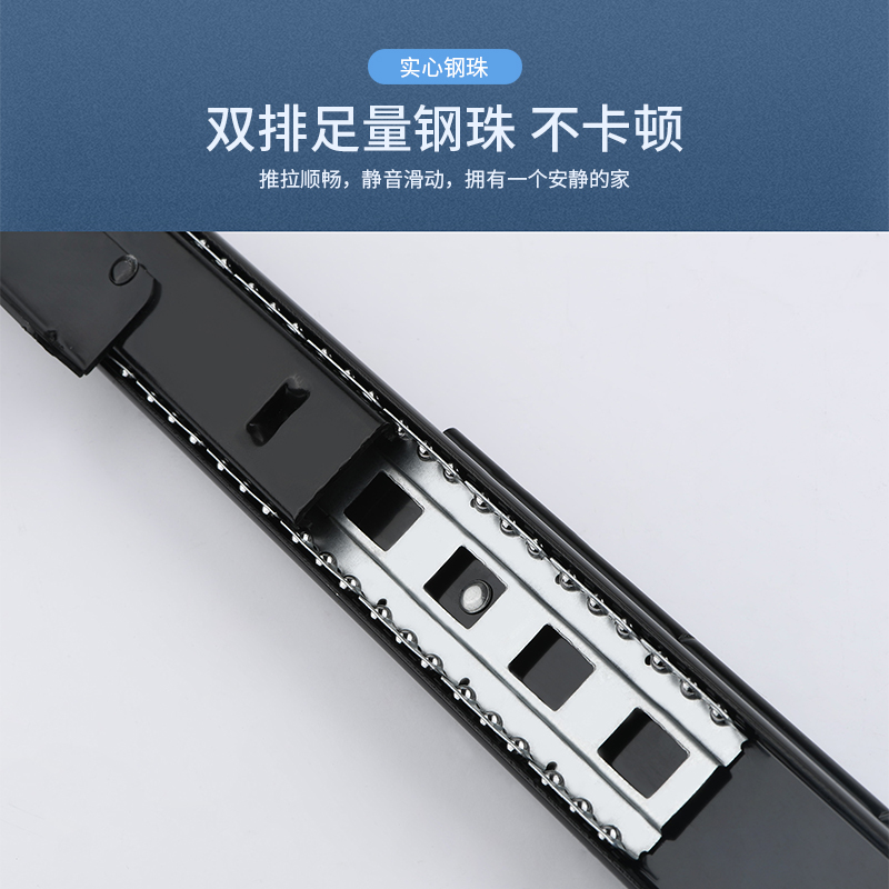 固特不锈钢抽屉轨道三节轨加厚缓冲阻尼静音导轨橱柜键盘托滑轨