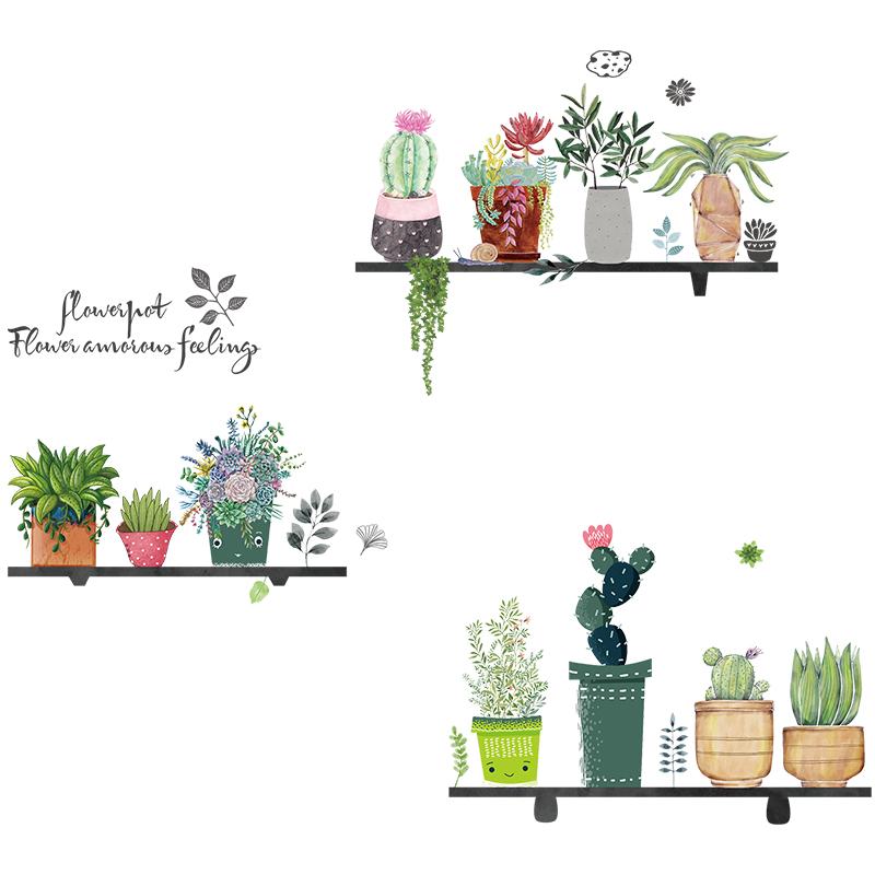 创意个性 饰温馨房间卧室床头墙壁纸贴画 墙纸自粘盆栽客厅墙贴纸装
