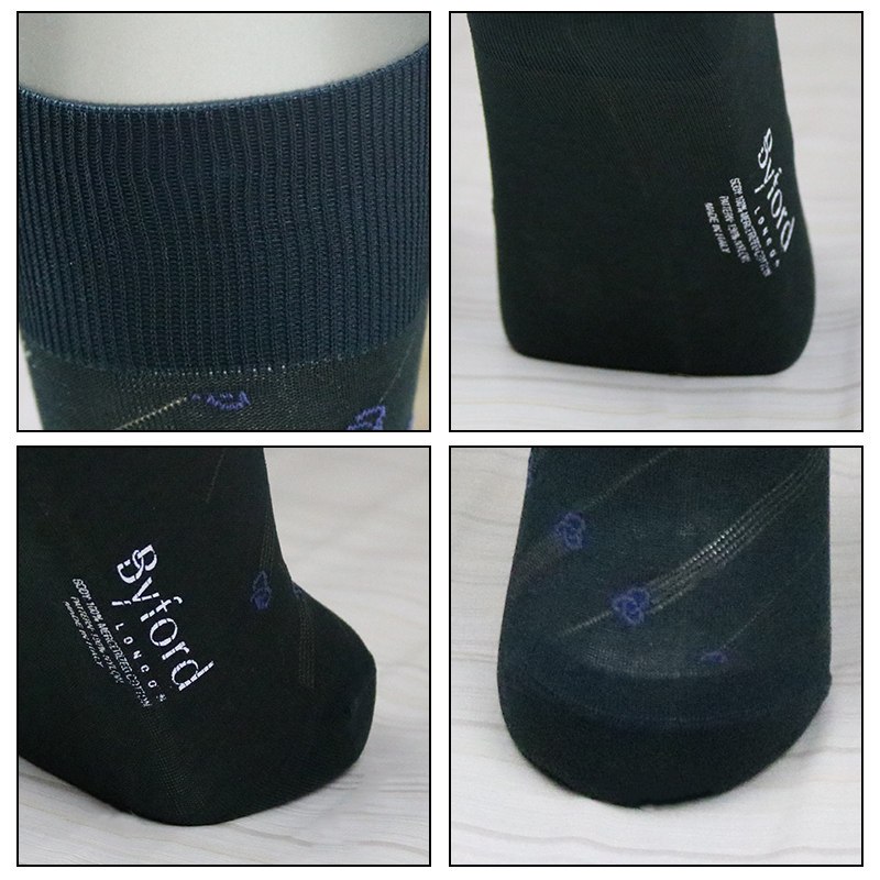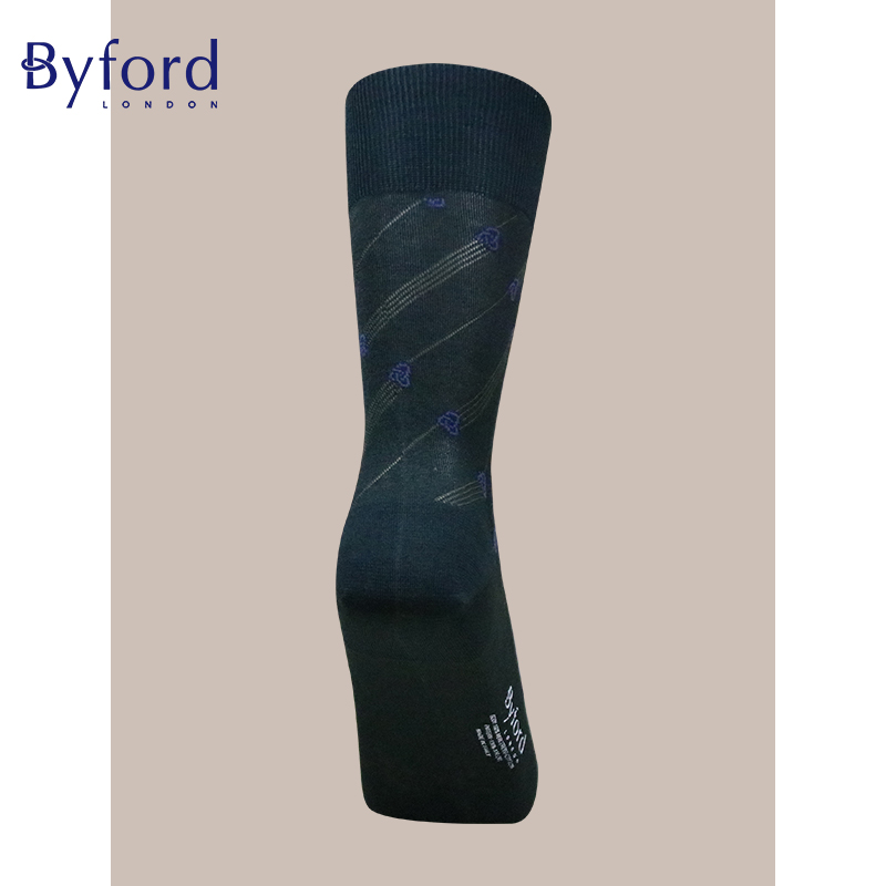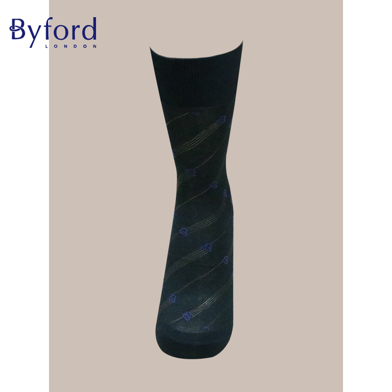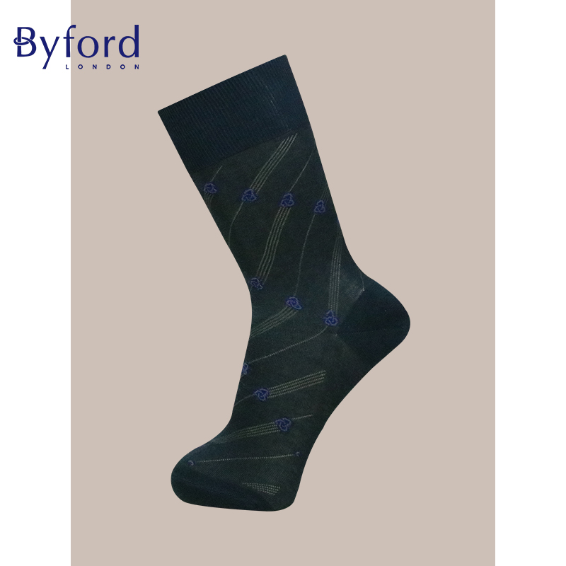 Byford 丝光棉中筒袜意大利产透气提花绅士袜BI9266 百富男士