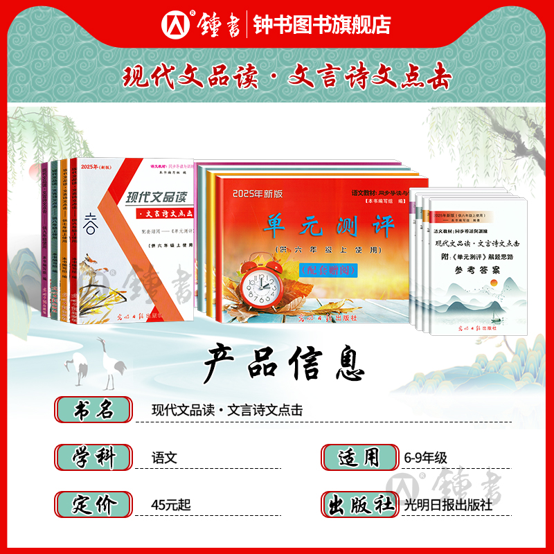 测评语文书教材同步导读与训练 社6789上下册单元 2025年新版 现代文品读文言诗文点击六年级上下册七年级八年级上九年级光明日报出版