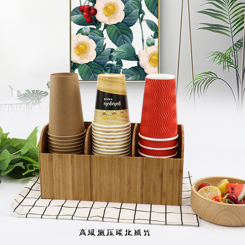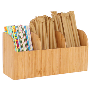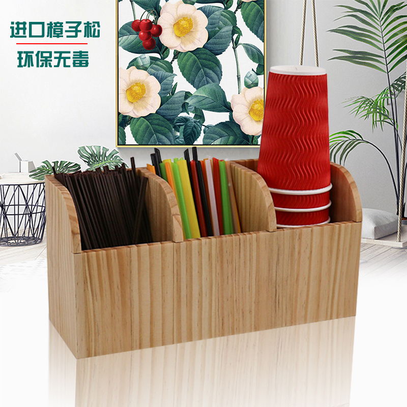 奶茶店实木咖啡水果饮品茶吸管奶油球小勺子搅拌棒分纸杯收纳盒架