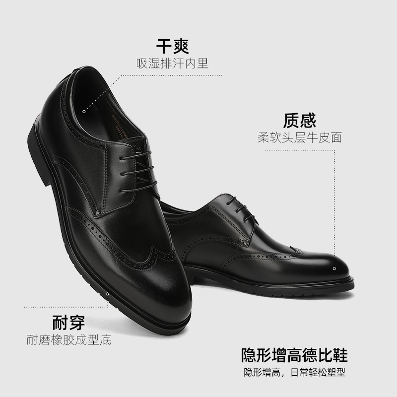 潮皮鞋 金利来皮鞋 男布洛克雕花男鞋 皮鞋 真皮内增高透气商务正装
