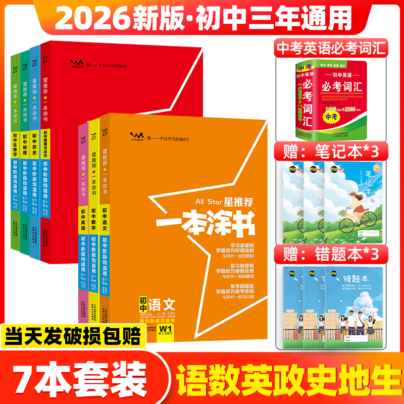 2026一本涂书初中数学物理语文英语化学政治历史生物地理全套七八九年级初一初二初三上册下册教辅辅导知识点大全中考总复习资料书