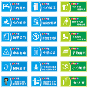 温馨提示标识牌厕所卫生间洗手间标语节约用水用电用纸指示牌保持安静随手关灯提示标牌标志文明标语墙贴定制