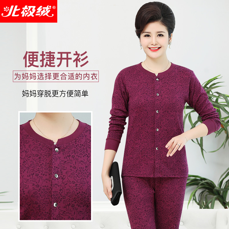 上衣 加绒加厚发热羊毛蚕丝秋衣秋裤 德绒保暖内衣女士套装 秋冬季
