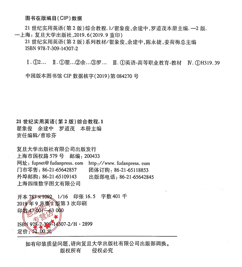 9787309143072 大学英语教材实用英语系列教材十二五职业教育国家规划教材翟象俊复旦大学出版 21世纪实用英语综合教程1第2版 第二版