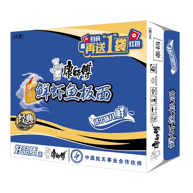 泡面速食面即食面 24袋整箱装 康师傅方便面鲜虾鱼板面袋装 85g