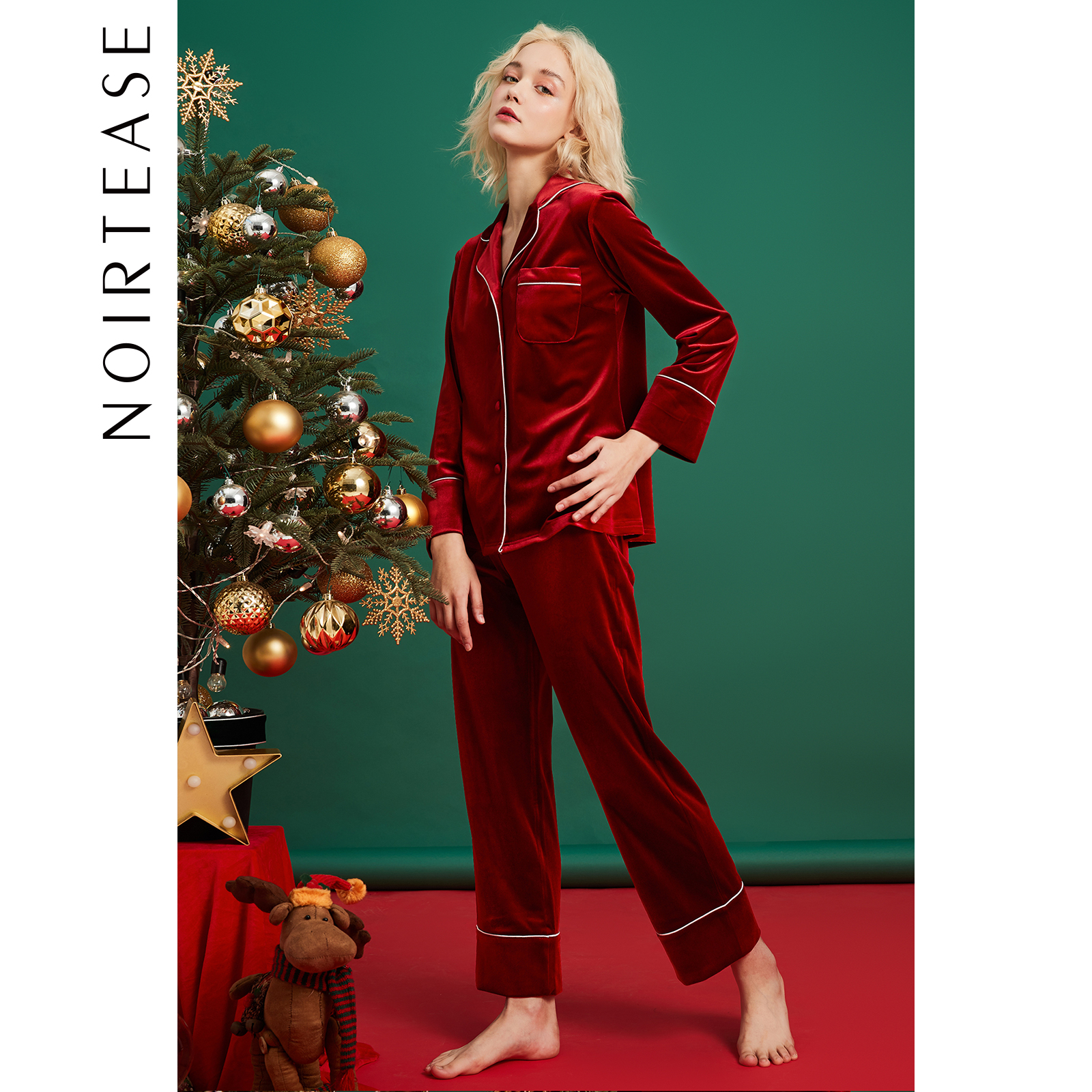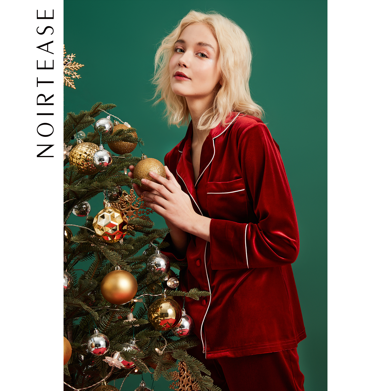 睡衣家居服两件套装 NoirTease男女情侣款 圣诞礼品盒春秋丝绒长袖