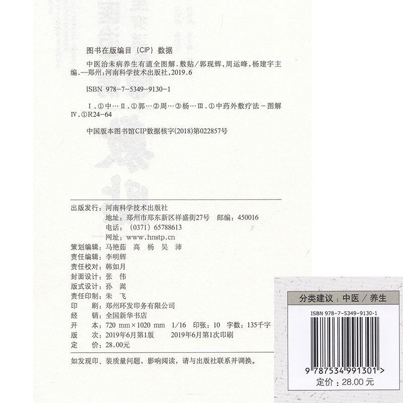 中医治未病养生有道全图解 周运峰 敷贴 社 杨建宇主编 河南科学技术出版 现货