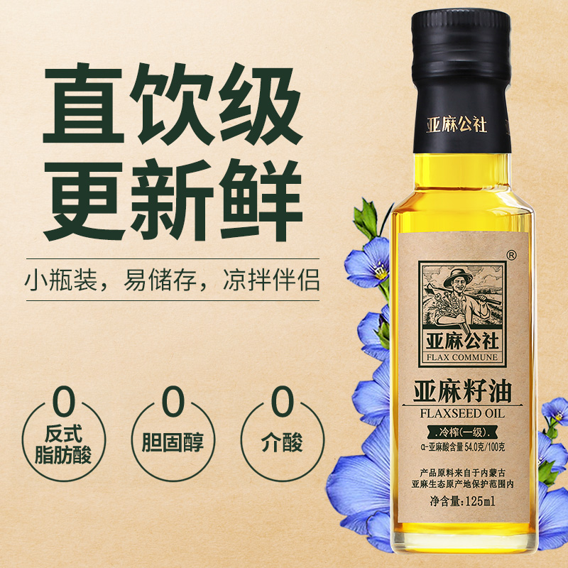 亚麻公社 纯亚麻籽油低温物理冷榨一级125ml宝宝健康食用油亚麻酸