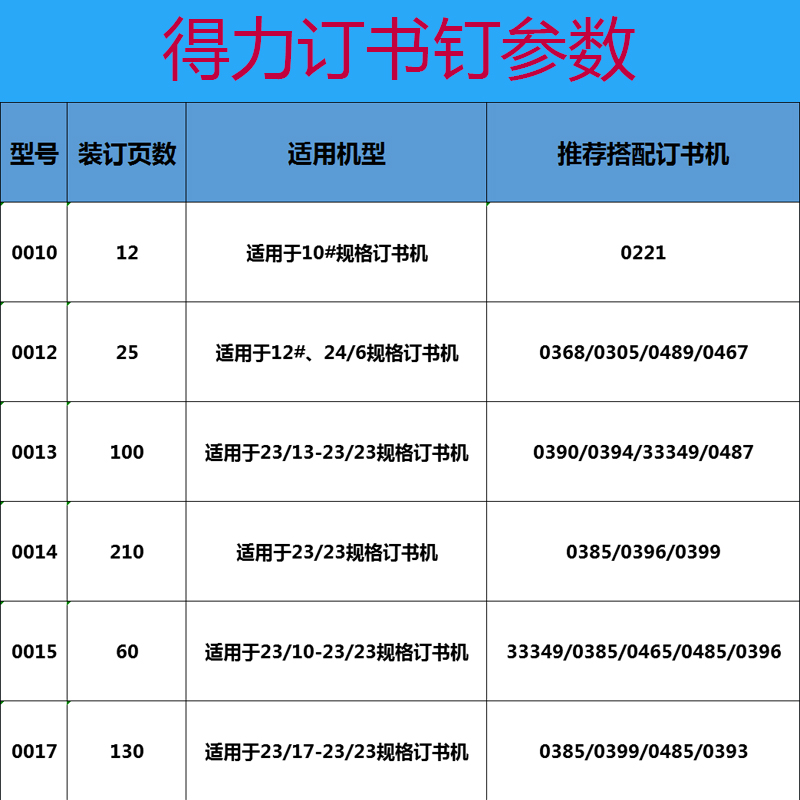 订机80页钉适用23 13办公财务重型装 13规格0390 0394 0487订书机5盒 得力0013厚层订书钉5盒装 33349