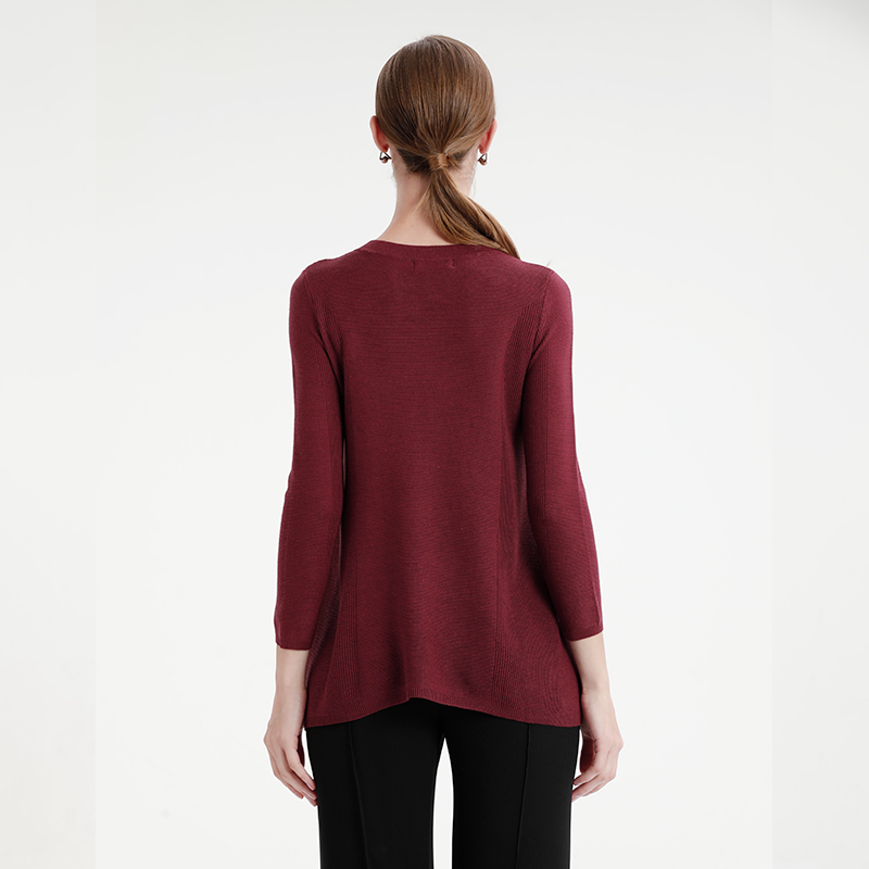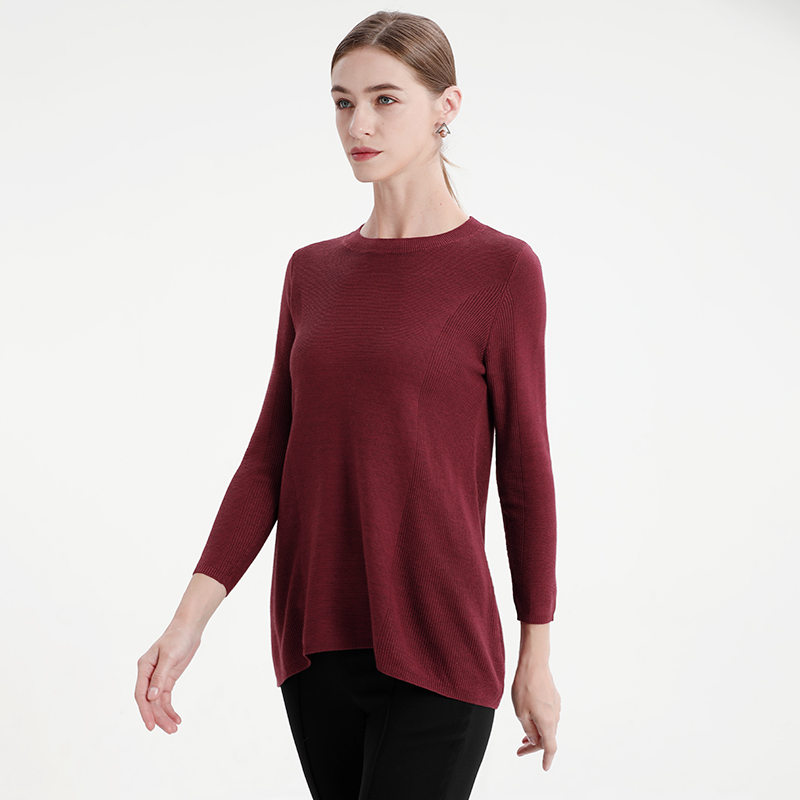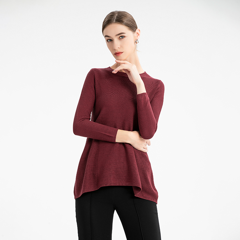 圆领宽松桑蚕丝套衫 上衣女装 长袖 中长款 打底衫 优媛秋冬真丝针织衫