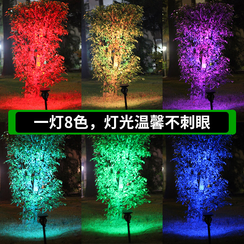 太阳能投射灯led户外庭院防水花园景观装 饰别墅插地草坪照树彩灯