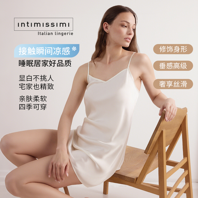 Intimissimi意舒漫优雅桑蚕丝女士家居睡衣打底吊带睡裙LC71S3