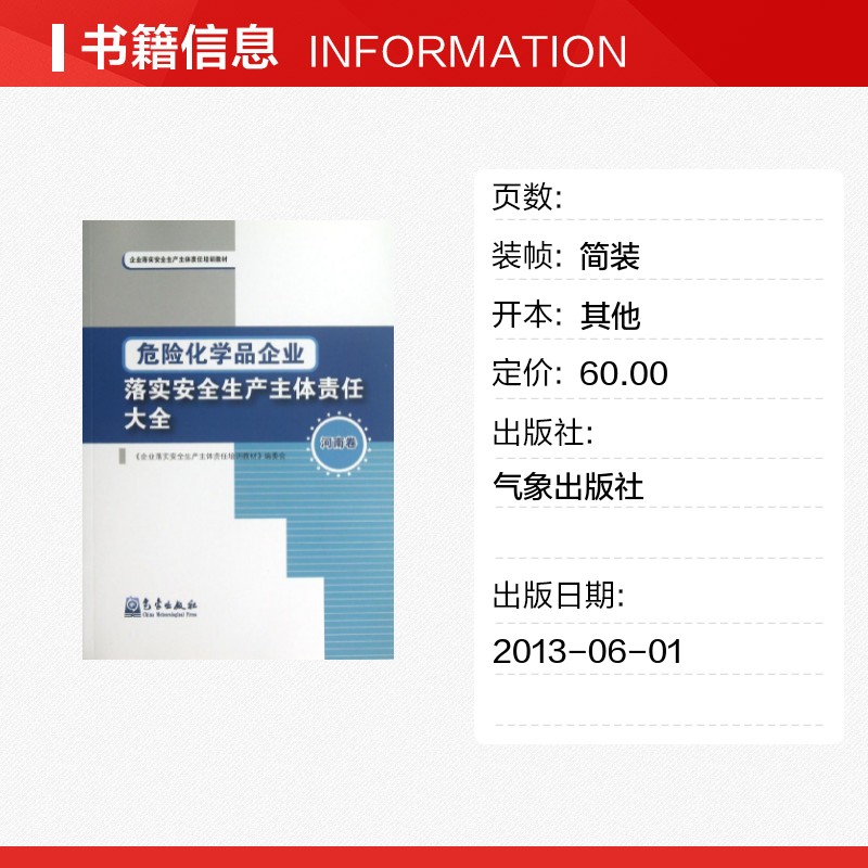 著作 企业管理经管 气象出版 河南卷 社 图书籍 编委会 新华书店正版 危险化学品企业落实安全生产主体责任大全 励志