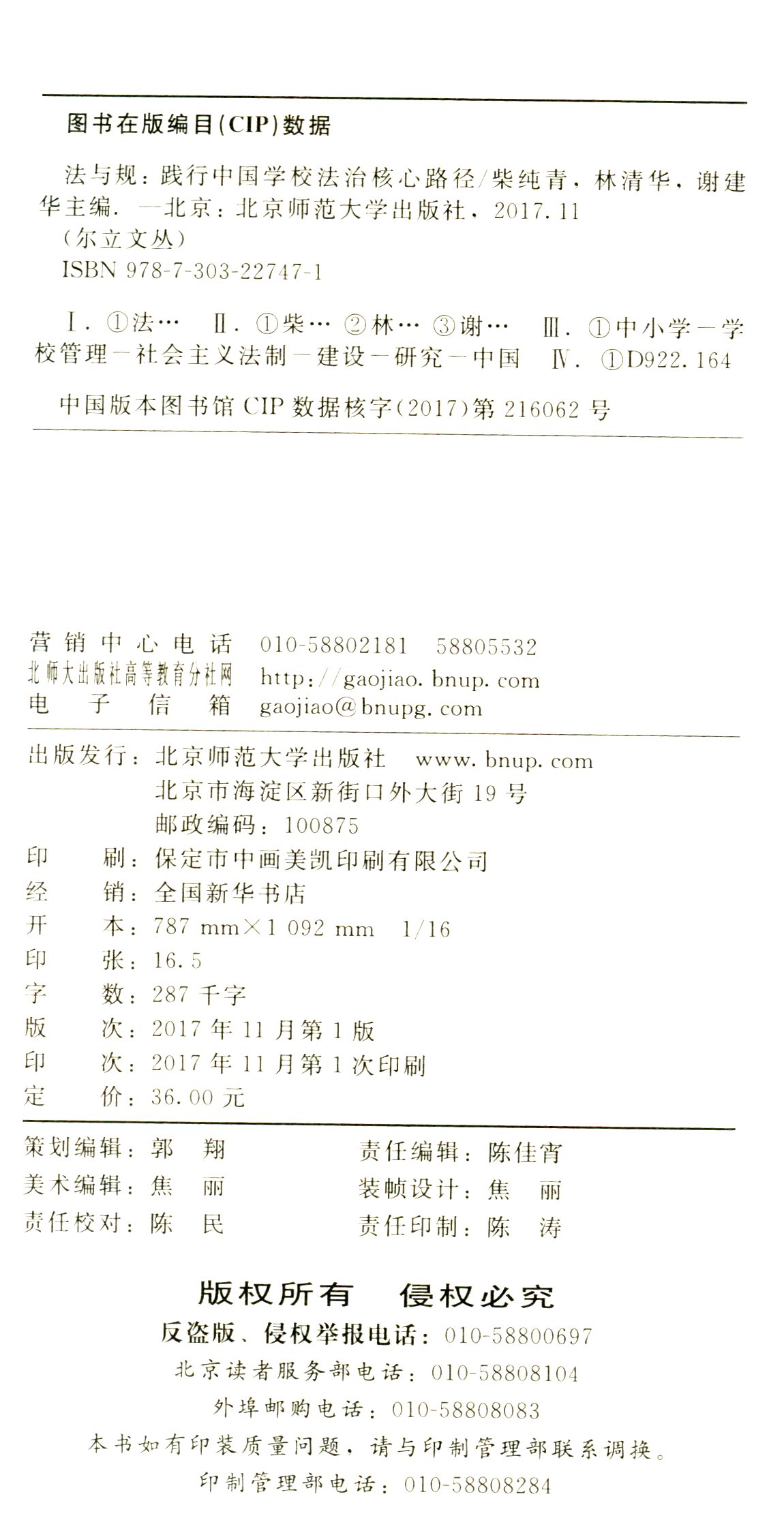 践行中国学校法治核心路径 正版 9787303227471 社 书籍 北京师范大学出版 法与规