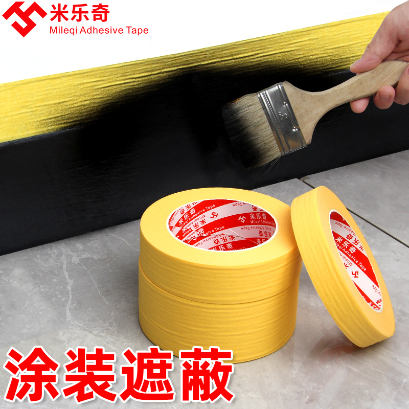 黄色高粘美纹纸和纸胶带批发分色纸真石漆汽车喷漆装 饰喷漆遮蔽纸 修50米长外墙真石漆专用分格线条户外施工装