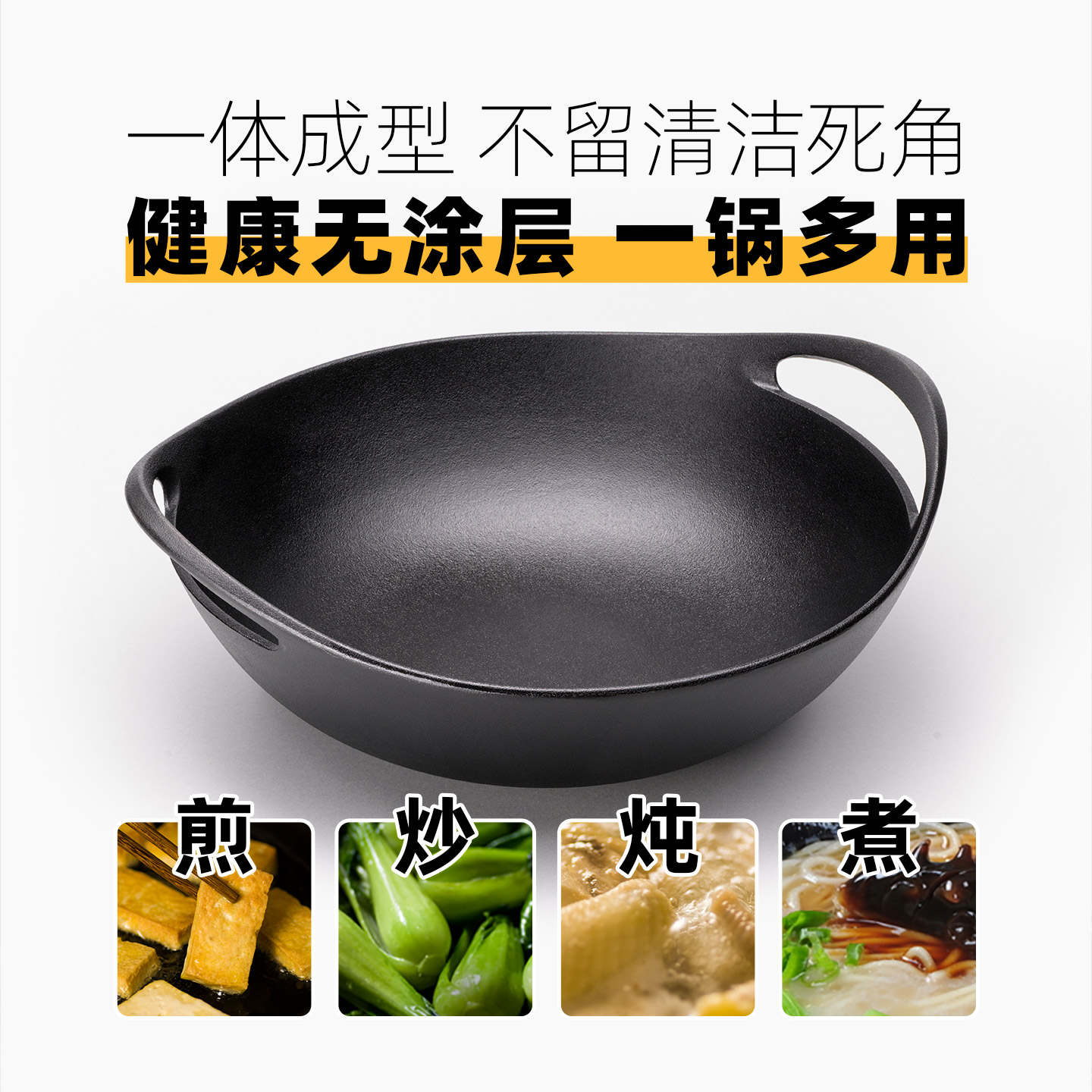 九阳铁锅无涂层炒锅家用炒菜锅不易粘锅电磁炉专用燃气灶旗舰店炊