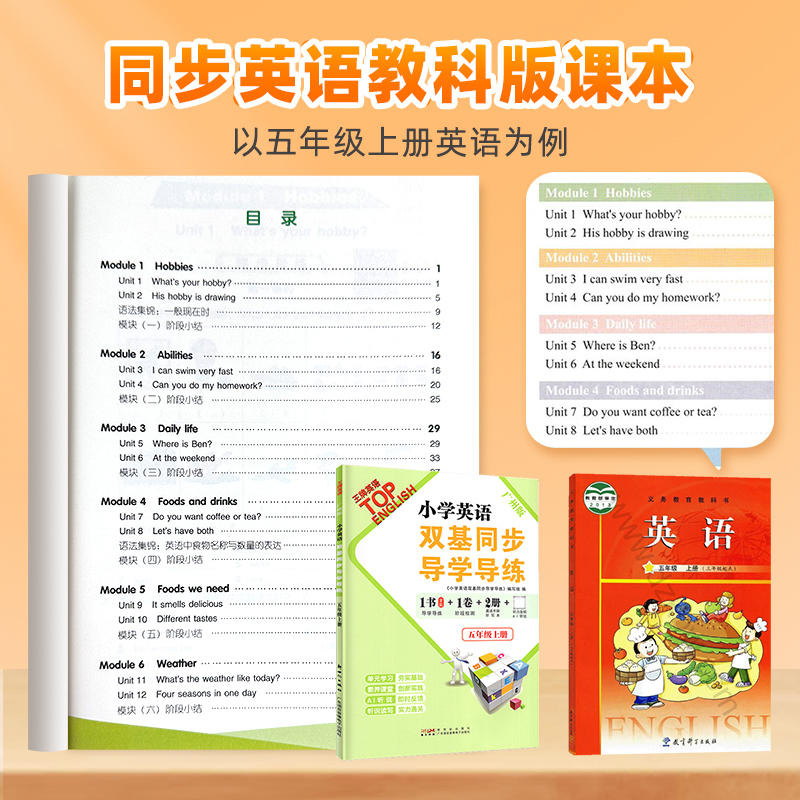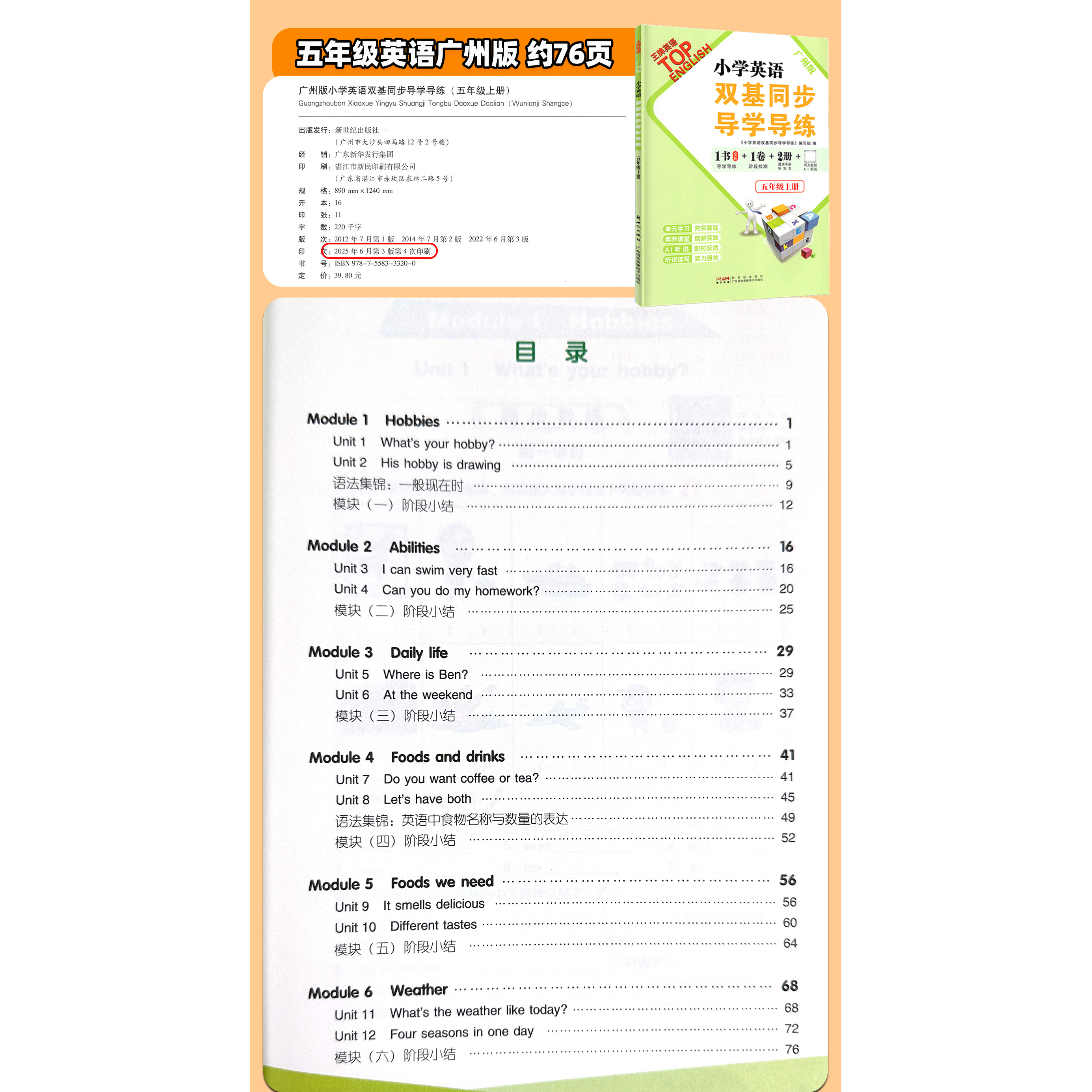 赠听力训练听写本同步作业本AB试卷广州版 小学英语双基同步导学导练三四五六年级上下册王牌英语小学5年级教科版 广州发货 2025秋