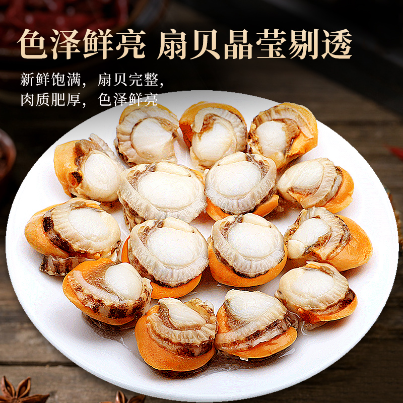 扇贝肉带黄新鲜扇贝鲜活特大冷冻海鲜水产红贝超大号特级商用批发