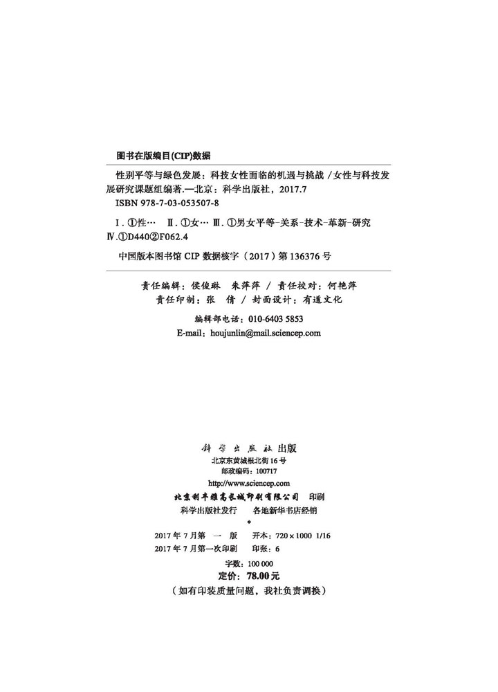 性别平等与绿色发展:科技女性面临 社 机遇与挑战科学出版