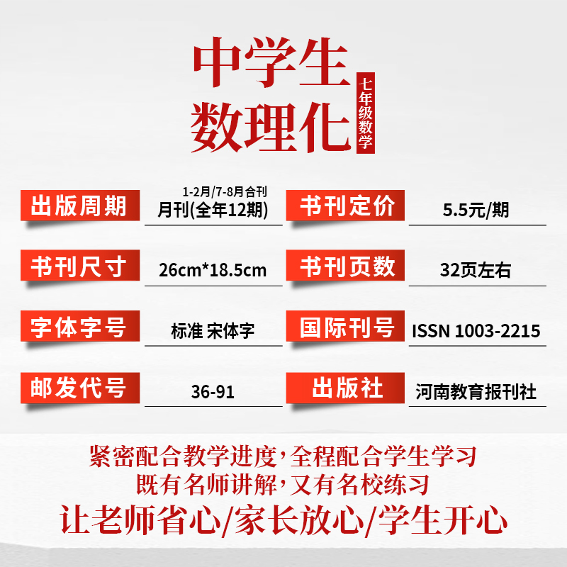8月 2025年订阅 七年级数学杂志2025年1 初中生阅读考试学习辅导资料教辅书籍期刊 2021年 2023年 中学生数理化 2024年