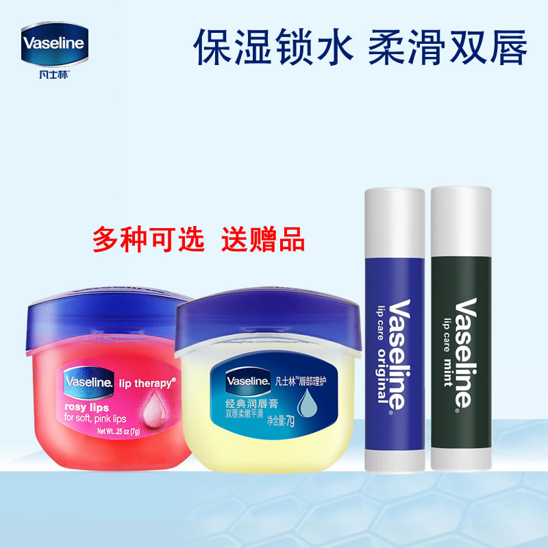 Vaseline凡士林润唇膏原味玫瑰焦糖白桃味保湿 缓解干裂护唇晶冻