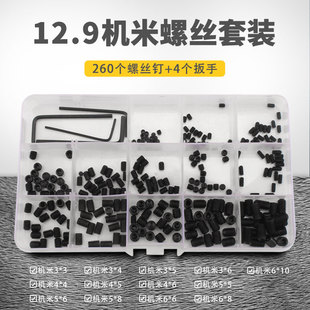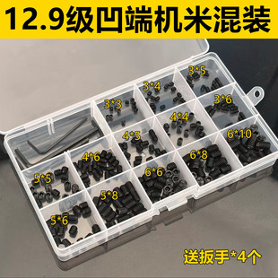 12.9级高强度内六角紧定螺丝顶丝机米螺丝紧定螺钉套装 M3M4M5M6M8