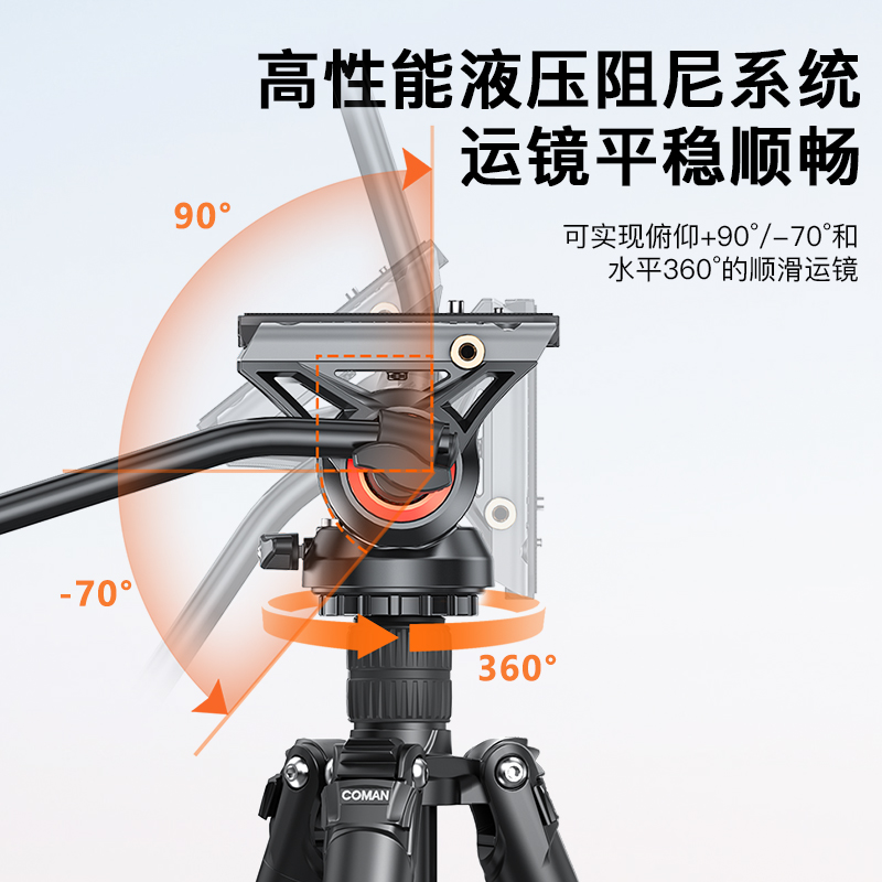 科漫KX3939相机三脚架支架专业便携旅行摄影液压阻尼科曼三角架拍摄支架佳能索尼大疆单反摄影摄像脚架稳定器