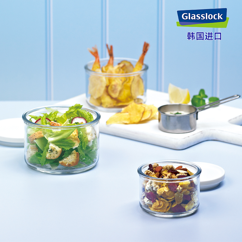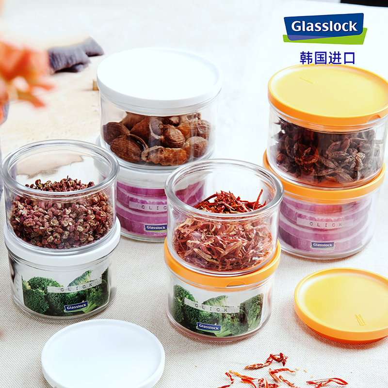 Glasslock韩国进口糖果罐调味罐圆形玻璃密封储物罐韩式 零食盒子