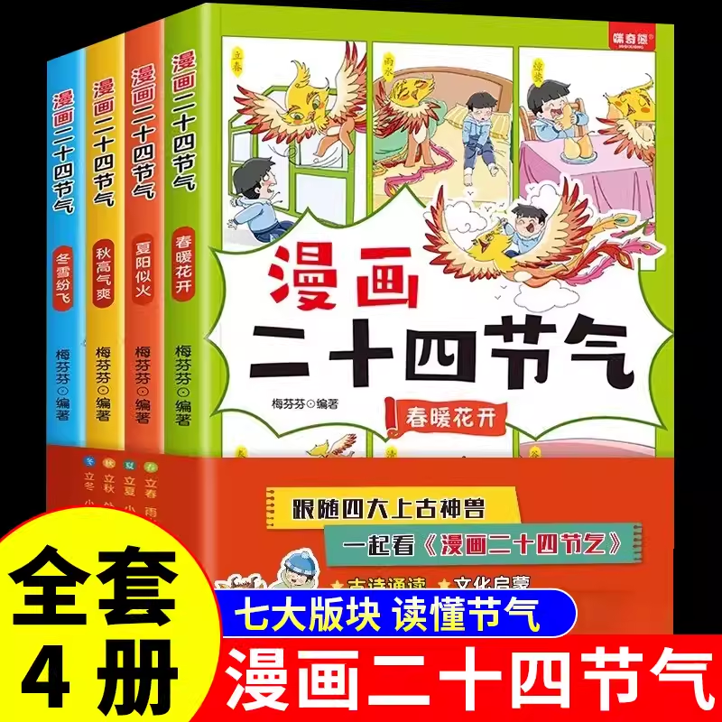 24节气歌书春夏秋冬儿童自然科学知识启蒙绘本 中华优秀传统文化故事科普百科书籍这就是写给孩子中国人 全套4册 漫画二十四节气