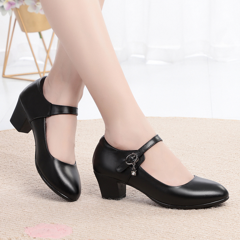 高跟鞋 黑色跳舞旗袍走秀鞋 女鞋 职业工作鞋 软底 中跟粗跟单鞋 真皮鞋