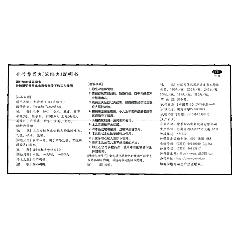 不思饮食胃脘满闷泛吐酸水温中和胃 280丸 仲景 香砂养胃丸浓缩丸