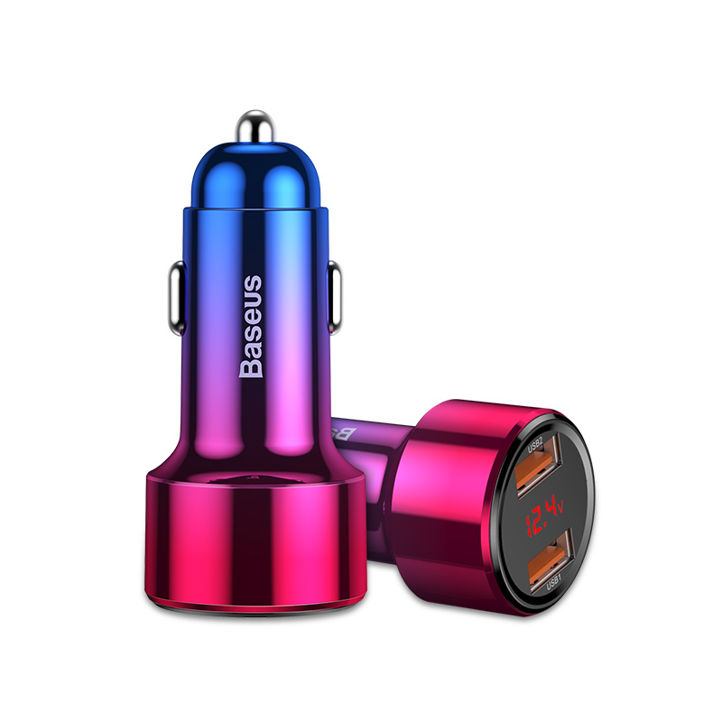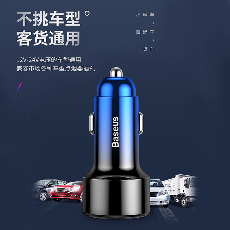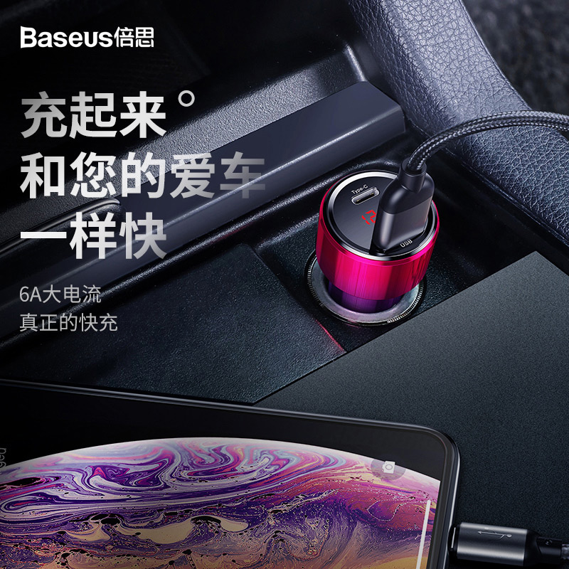 倍思PPS车载充电器5A超级快充PD车充45W适用于苹果X闪充Type C数显USB华为一拖二点烟器插头QC3.0手机汽车用