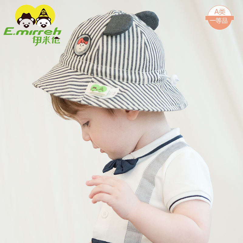 伊米伦婴儿帽子春秋可爱儿童渔夫帽遮阳新款 宝宝太阳帽男纯棉韩版
