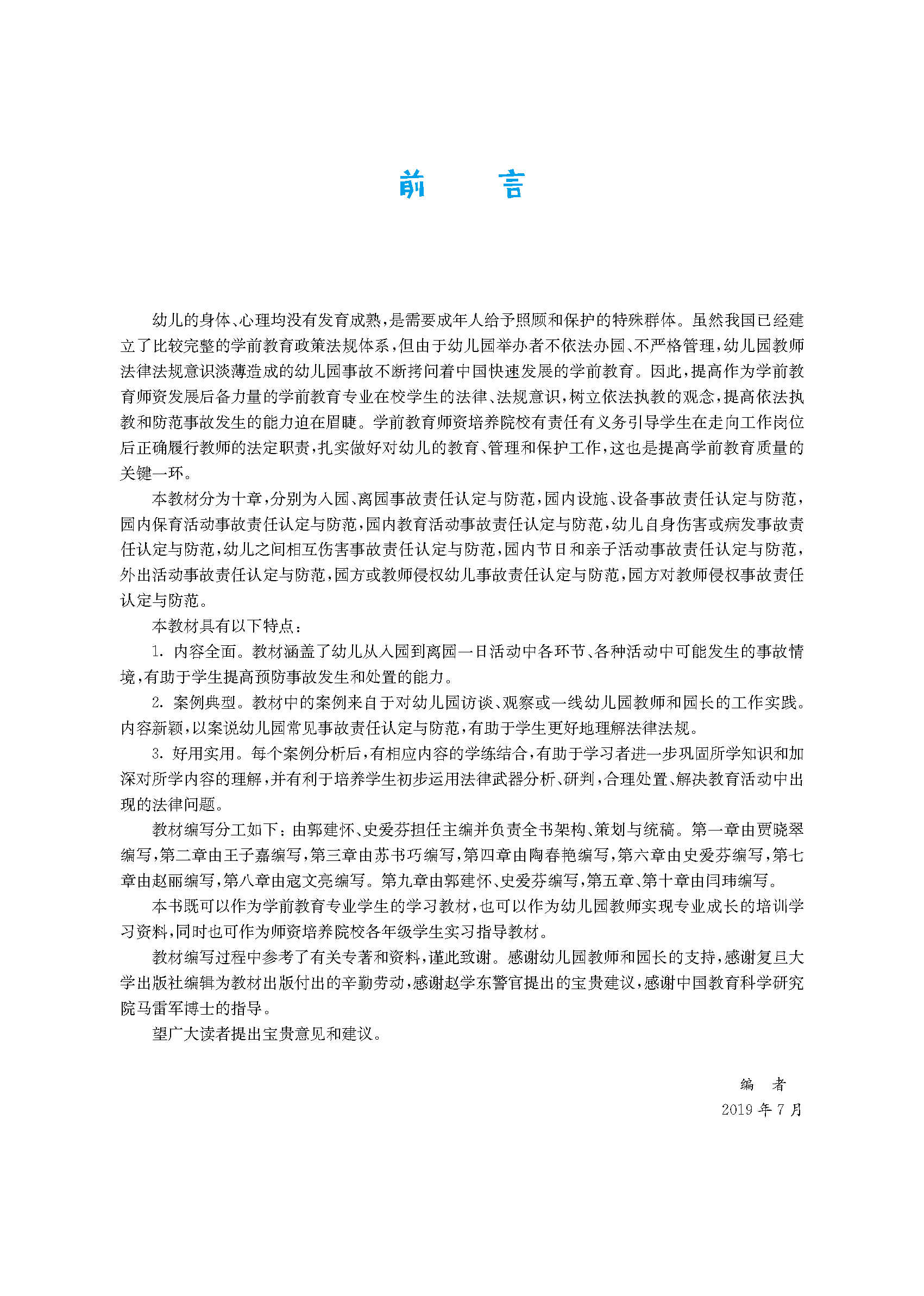 全国学前教育新课程标准 复旦大学出版 十三五 幼儿园教师参考用书 社 规划教材系列 幼儿园常见事故责任认定与防范