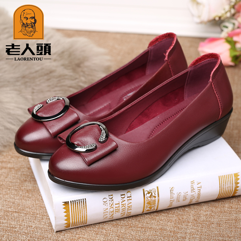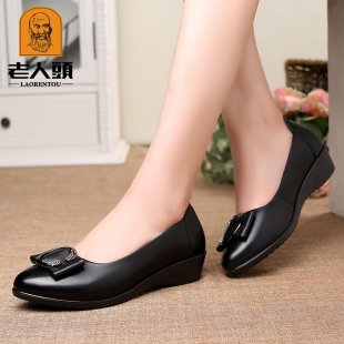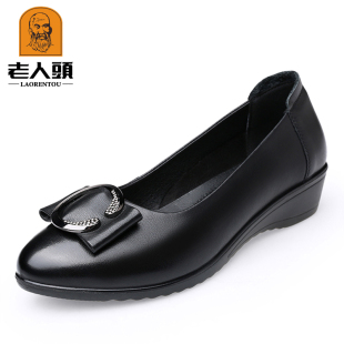 软底舒适女单皮鞋 老人头女皮鞋 真皮透气中老年妈妈鞋 新款 2025夏季