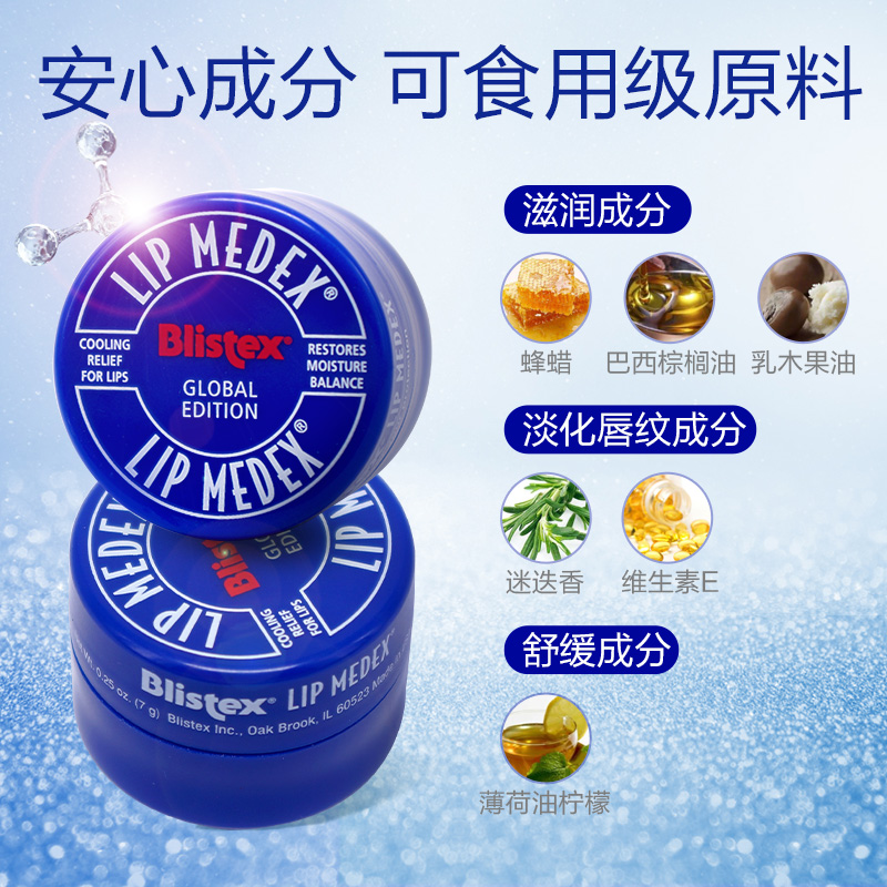 blistex碧唇小蓝罐瓶润唇膏唇膜女保湿 滋润补水去死皮淡化唇纹男
