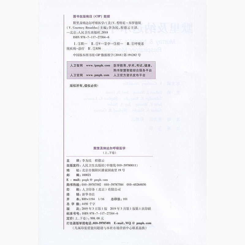 第6版 六 人民卫生出版 全新 社 程德云 默里及纳达尔呼吸医学 李为民 正版 上下卷